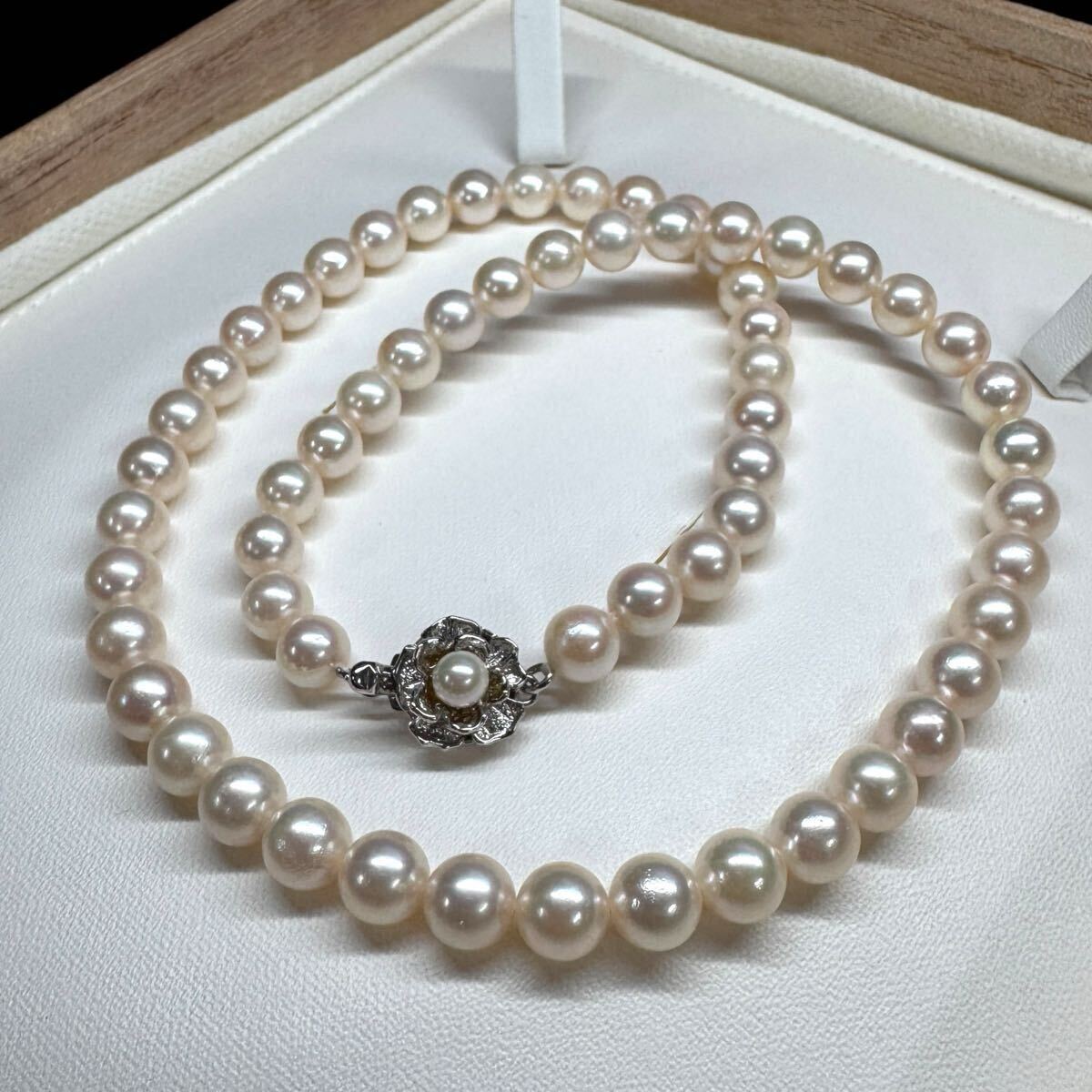 > 最高級 テリ強 アコヤ真珠 あこや パール ネックレス ラウンド SV金具 ジュエリー 約6.5-7.0mm 美品 Pearl necklace jewelry【c2575】