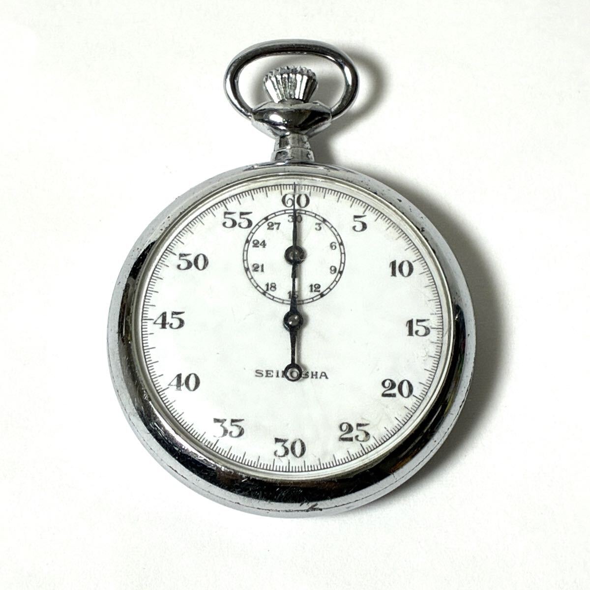 - 精工舎 SEIKOSHA ストップウォッチ 手巻き シルバー色 銀色 白文字盤 アナログ セイコー アンティーク (k0112