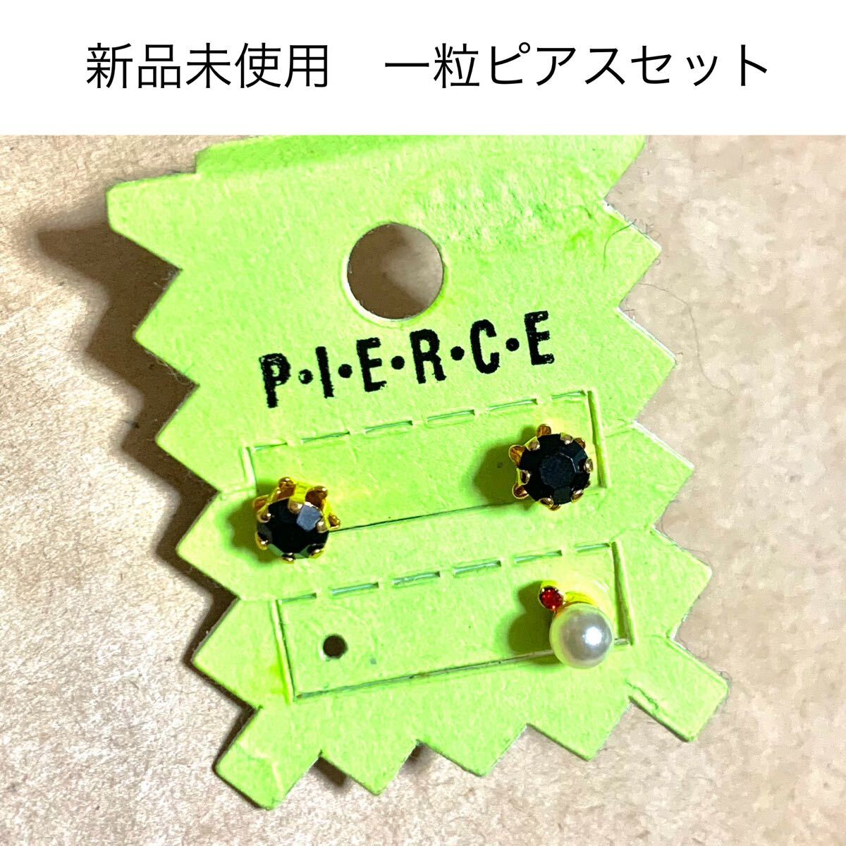 - 新品未使用 ひとつぶピアス3点セット ブラック パール 一粒ストーン 黒 アクセサリー