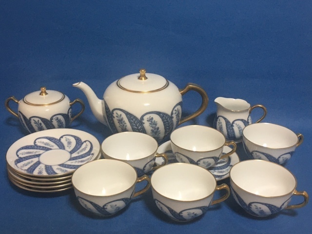 - ◎大倉陶園 格調高い呉須更紗 色盛り 「手描き」 17pティーセット◎z31