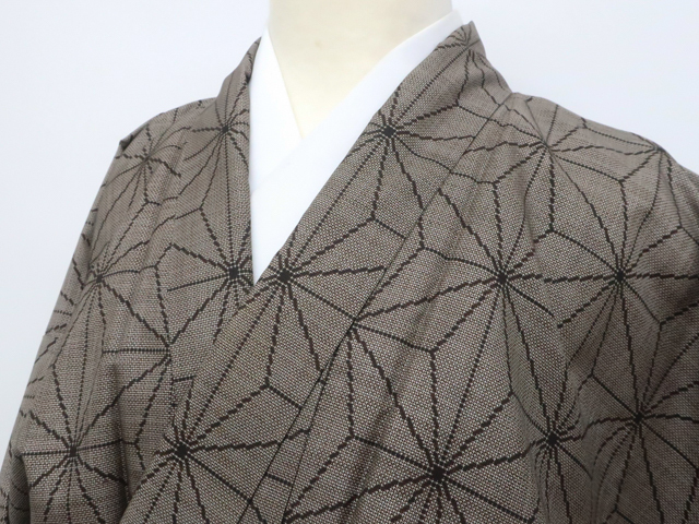 - 《古美術京松》リサイクル着物 大島紬 9マルキ 麻の葉文 正絹 身丈156cm 裄丈63.5cm kyo7z08-921