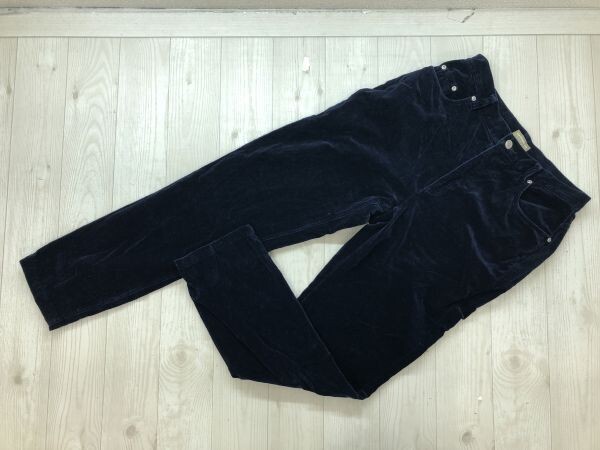 > リズ クレイボーン Liz Claiborne レトロ モード 古着 ベロア テーパード スリム パンツ ボトムス メンズ コットン100% 10号 紺