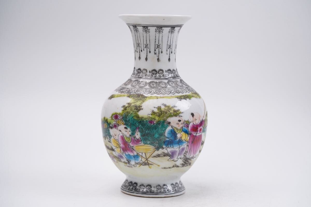 > 中国古美術 清時代 清 粉彩 花瓶 陶磁器 骨董 古玩 時代物 中国美術 古美術 骨董品 唐物 当時物 高さ20cm