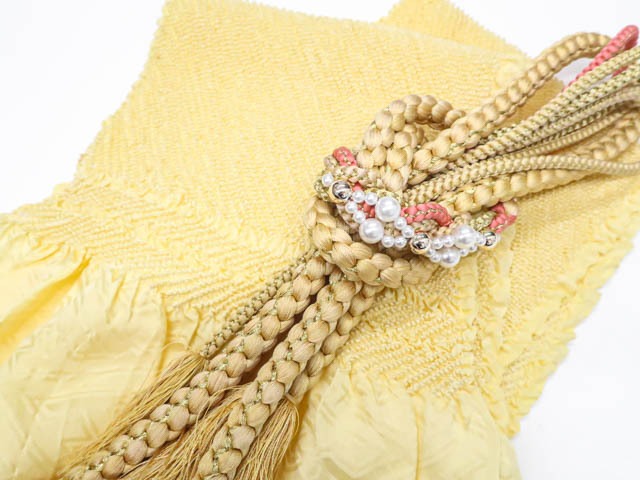 - 《京都一輝堂》リサイクル着物 和装小物 帯締め 帯揚げ セット 帯締 帯揚 振袖用 総絞り 金糸 丸組 飾り付き 25w07-9011