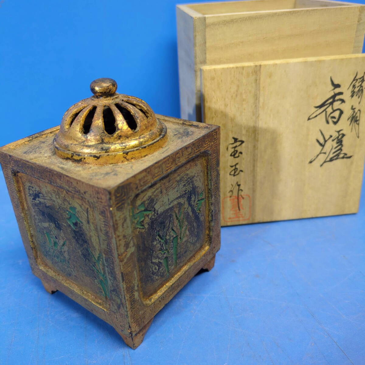 - kankando『宝玉 鋳銅 香爐』8cm×8cm×高11.5cm 共箱《真作》味わい深いです!