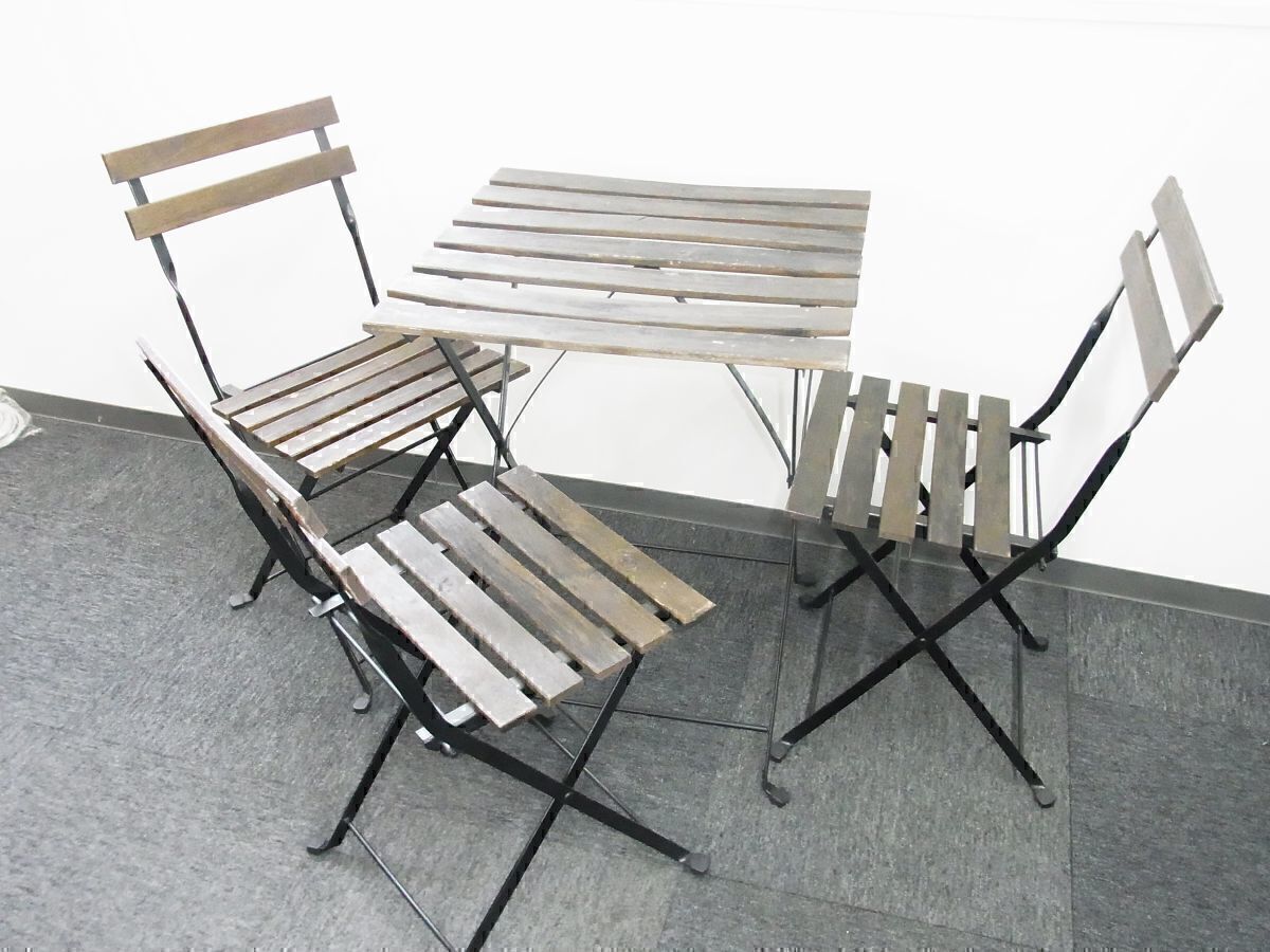 - ★直接引取大歓迎中古★IKEA イケア★TARNO テルノー★折りたたみテーブル&折りたたみ椅子4脚セット★ブラック黒アウトドア用品★テラス席