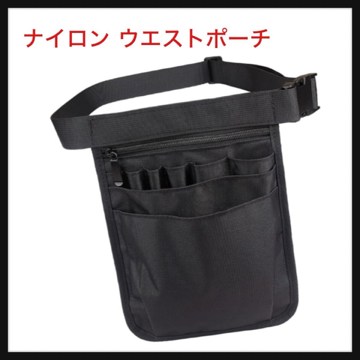 - 【開封のみ】サムコス ★ナイロン ウエストポーチ 工具袋 保育 仕事用 エプロンバッグ ウエストバッグ ベルト付 多機能 (ブラック)