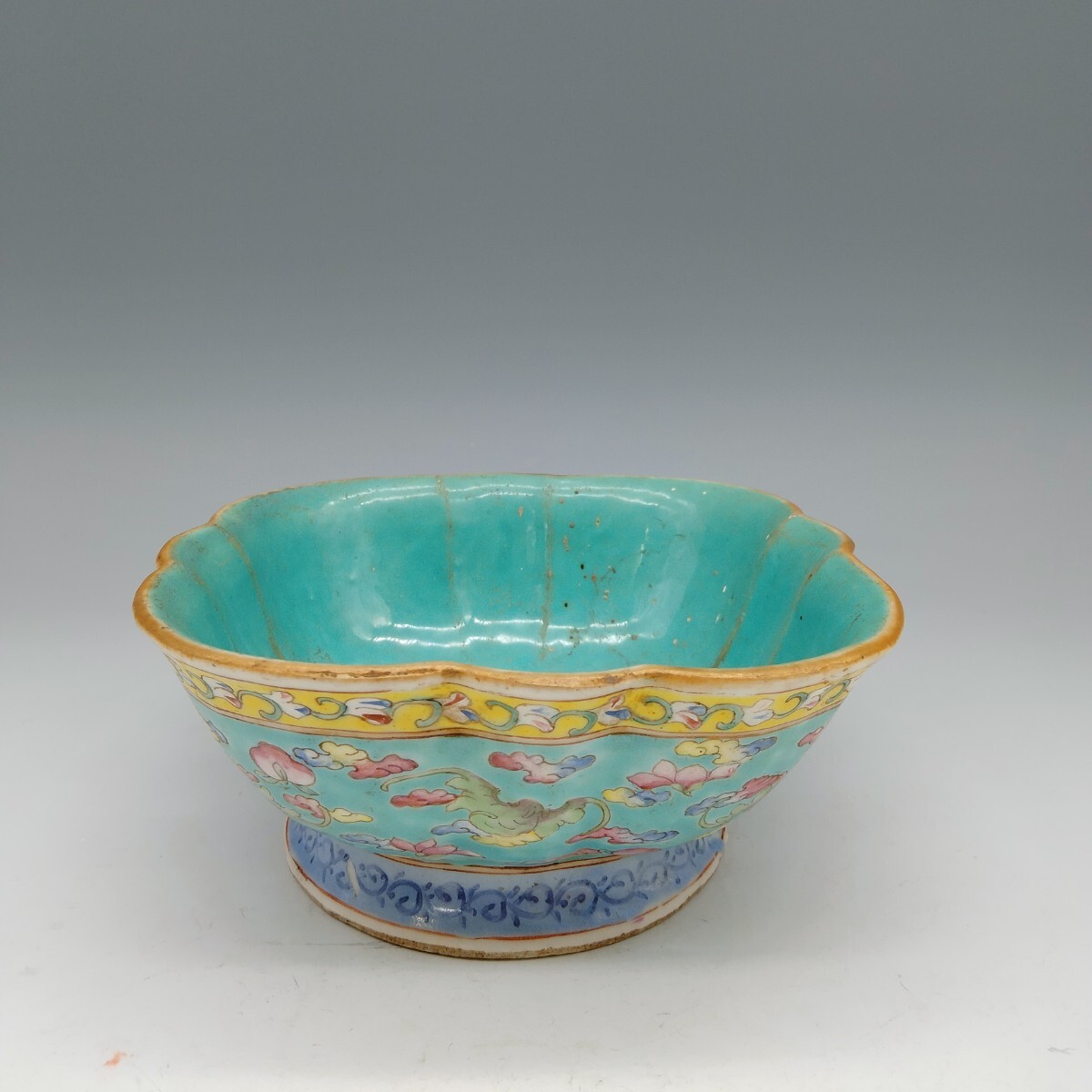 - 中国美術 在銘 粉彩蝙蝠紋四方鉢 時代物 植木鉢 唐物