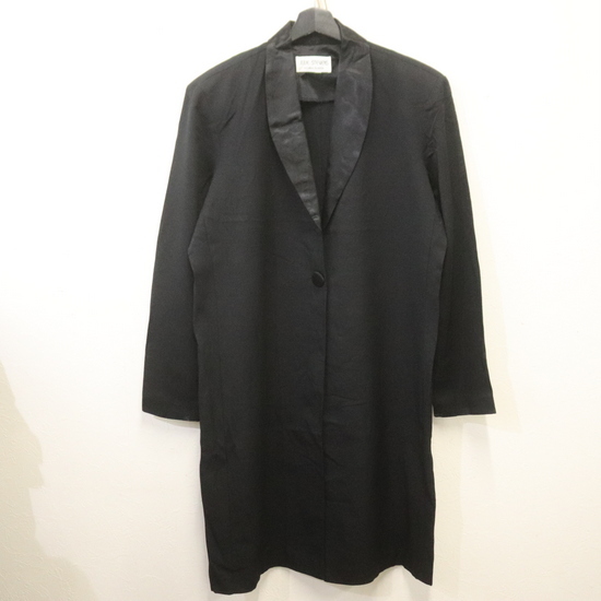 > X741 80sビンテージ JULIESTEVENS ロングジャケット■1980年代製 表記16サイズ 無地 ポリエステル レディース 90s 激安 古着卸 ブラック