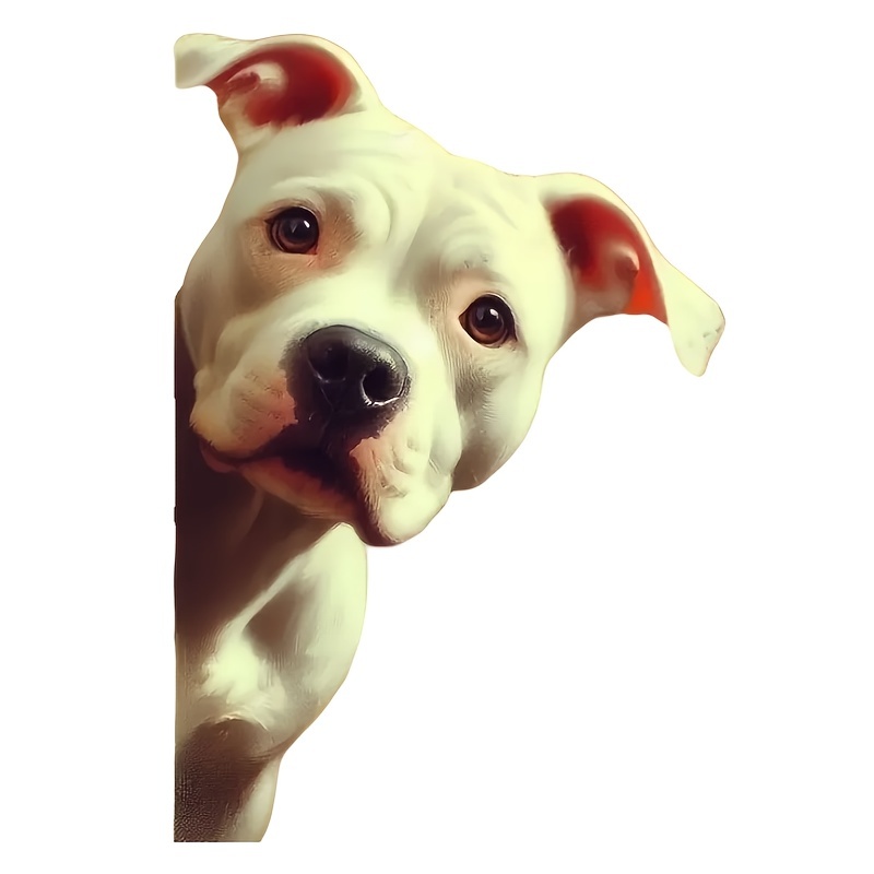 - ステッカー 壁から顔を出す犬 ピッドブル 車用 シール 15cm 白 イヌ いぬ ビニール 防水 おしゃれ 窓用 ノートパソコン オートバイ t8837