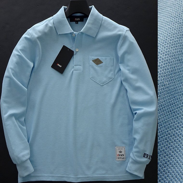 - 新品 ミスターヴァン 24年春夏 長袖 ワンポイント ポロシャツ M 水色【VA1941047_77_M】 MR.VAN ロゴ カノコ メンズ トップス スポーツ