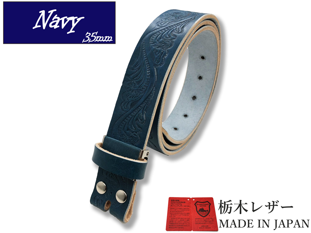 - 新品 栃木レザー カジュアルベルト Lサイズ メンズ クラフト 帯のみ 本革 交換用 取り換え 牛革 35mm 紺 ネイビー 銀ホック W050NVS-L