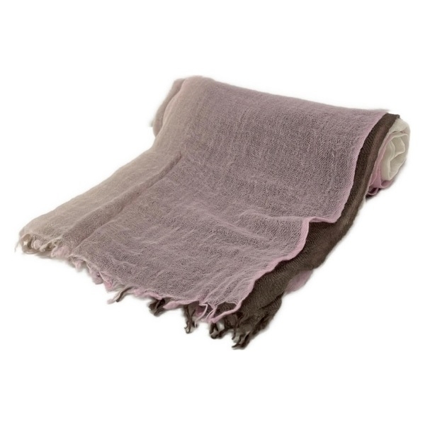 - トラデュイール Traduire ストール(ショール) - カシミヤ ピンク×白×ダークブラウン フリンジ マフラー