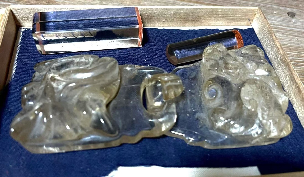 - コレクター放出品 中国古美術 本水晶 彫刻 尾錠 印鑑2点 希少品 骨董品 書道具 印章 古印材