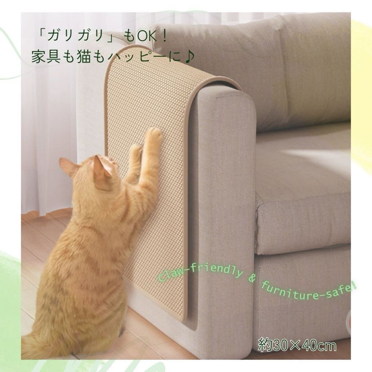 - 猫用爪とぎマット 麻製 30×40cm 家具保護 滑り止め付き