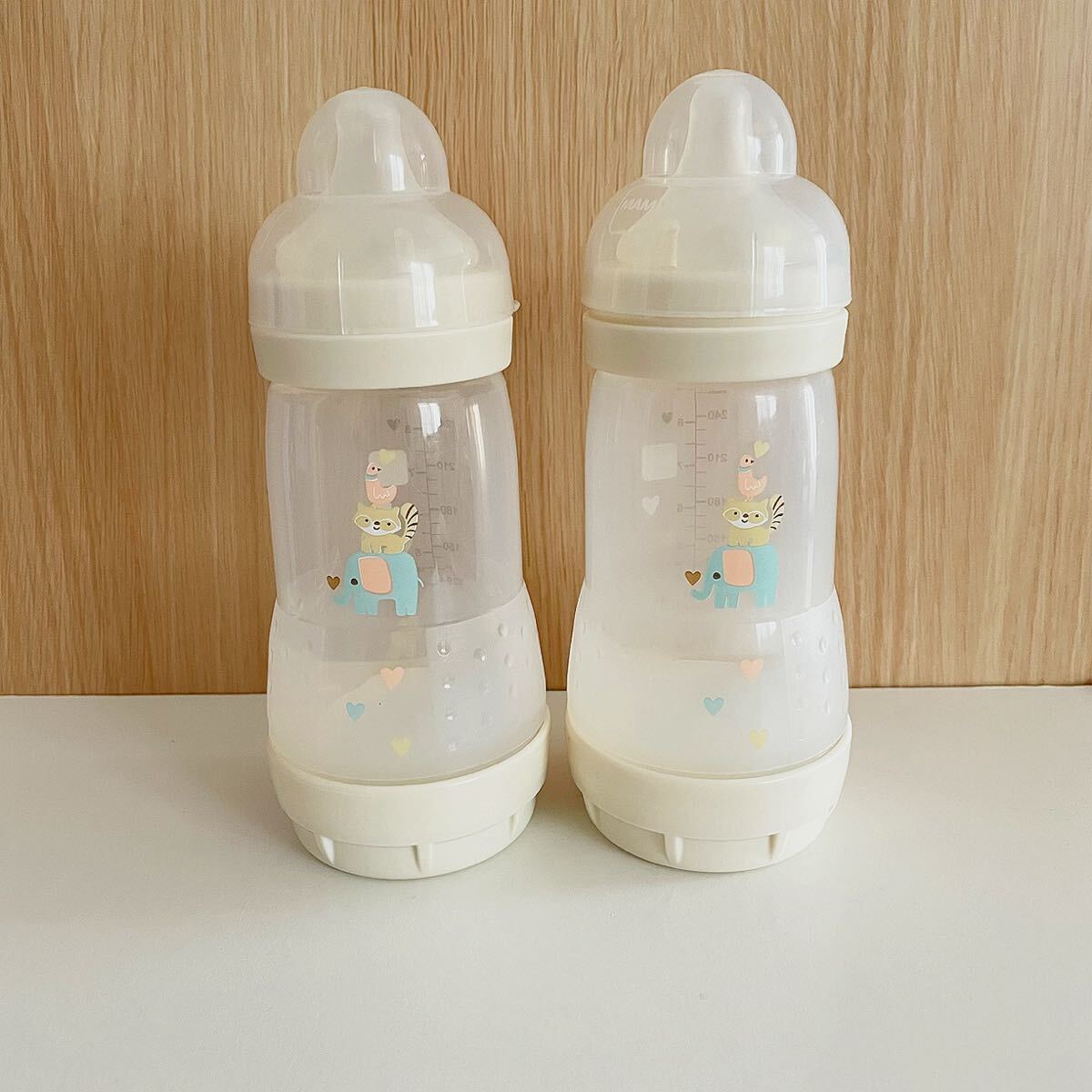 - 【美品】MAM アニマル柄 動物柄 ゾウ タヌキ バード 白 ホワイト 哺乳瓶 2本セット