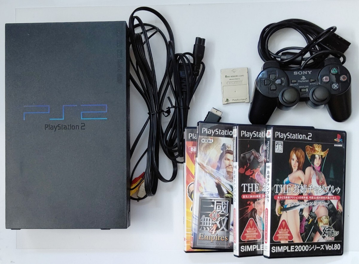 > PS2 SCPH-30000 ブラック プレステ2 本体 コントローラー メモリーカード ソフト4本 一式セット 動作読み込み確認 中古 レトロゲーム