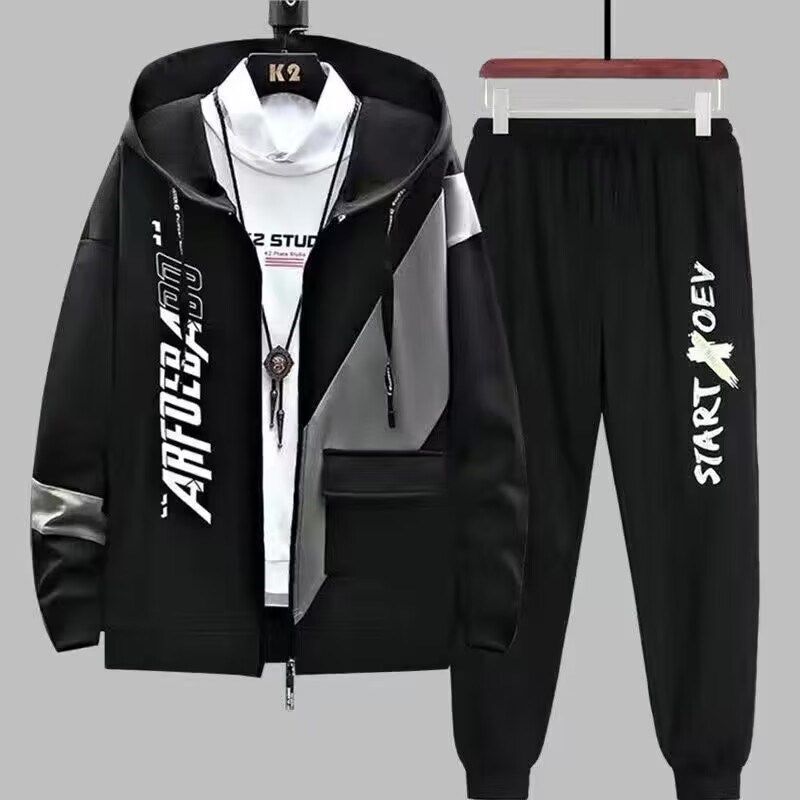 - 新作 前開き ボーイズ メンズジャージ スウェット 上下セット セットアップ カジュアル フード付き ブルー黒白 3色 M~3XLサイズ選択可