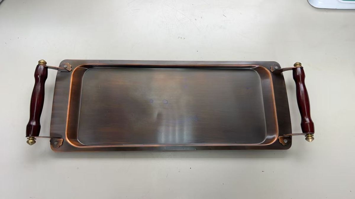 - S1-9-4→ 純銅 トレー お盆 工芸品 開封未使用品 食器 レトロ 工芸品