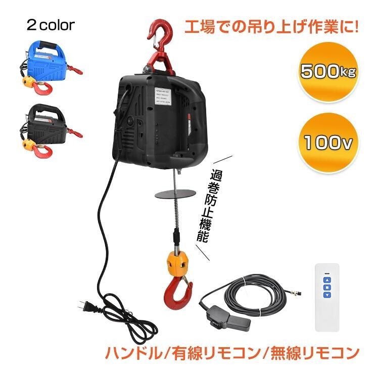 - 送料無料 電動ウインチ 電動ホイスト 100v 小型クレーン ハンドウインチ 巻き上げ機 吊り上げ 500kg 1500W ハンドル 無線リモコン sg149