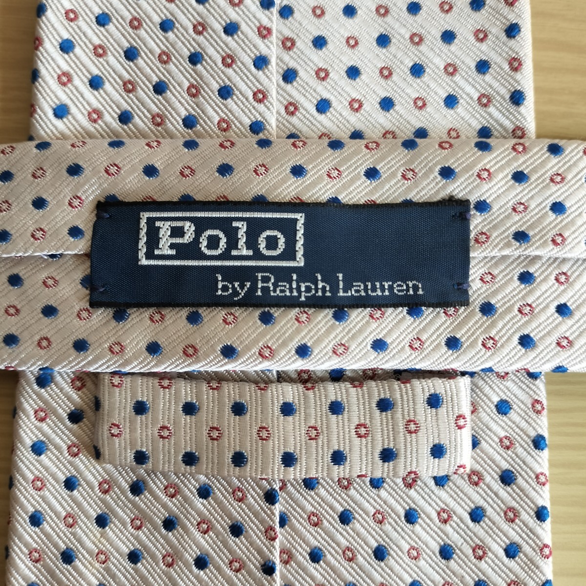 - POLO by RALPH LAUREN( ポロバイラルフローレン)シルバー赤青ミクロ丸模様ネクタイ