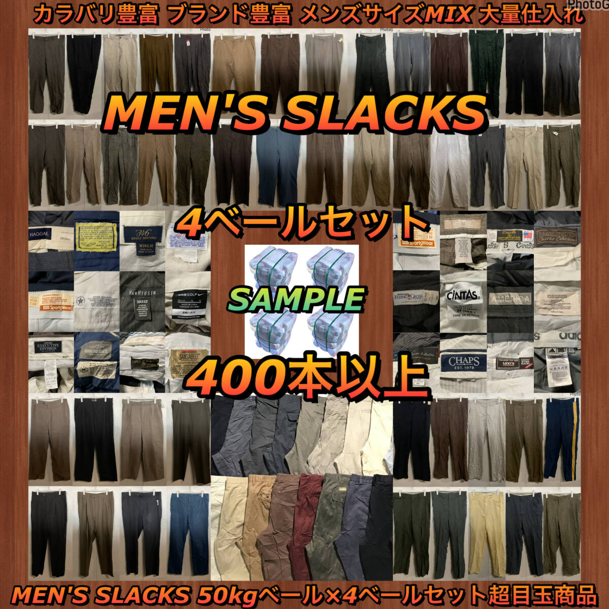 - 【T1511】★4ベールセット★ アメリカ古着 MEN'Sスラックス 400本以上 カラバリ豊富 ブランド多め サイズMIX 大量仕入れ 古着卸