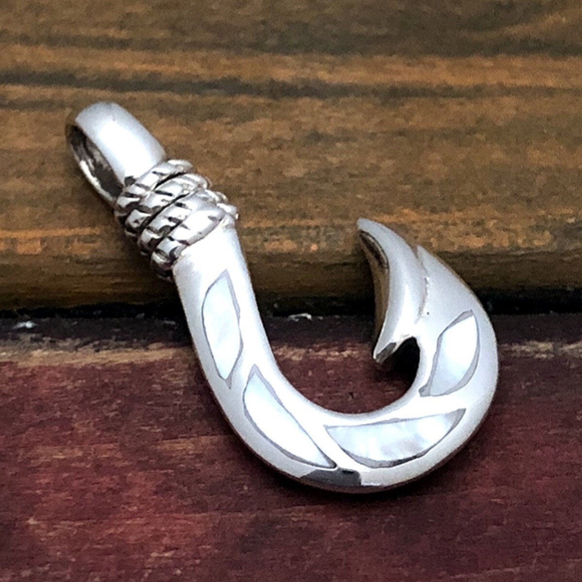 - 閉店処分!在庫ラス1!爆釣!ミニミニホワイトシェルフィッシュフック釣り針★純銀本物シルバー925ネックレストップ ハワジュ