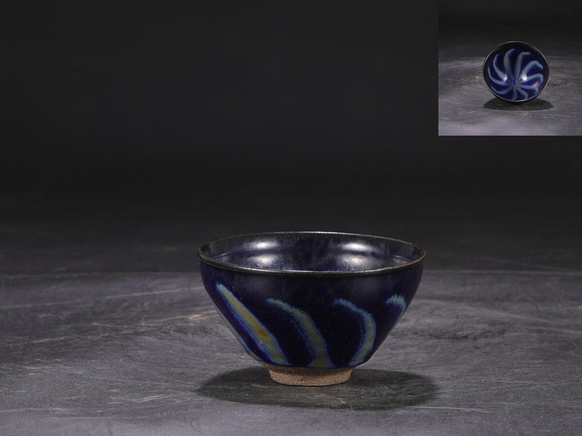 - 宋代 建窯 陶磁器 天藍釉 盞【仁】染付 置物擺件 中国古賞物 古美術 蔵出