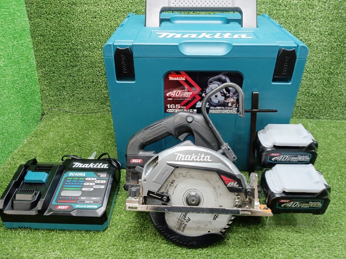 > 中古 makita マキタ 40V 165mm 充電式丸ノコ バッテリー2個+充電器 黒 ブラック HS001GRDXB