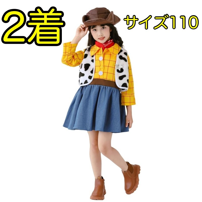 - (2着セット) [IntoU] トイストーリー ウッディ風 コスプレ 衣装 女の子 (110) ハロウィン クリスマス パーティ 誕生日 プレゼント