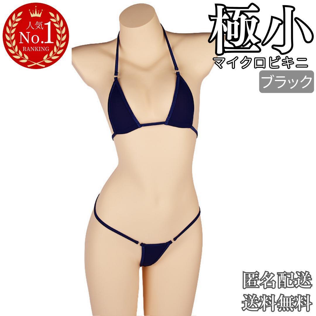 - マイクロ ビキニ 水着 ブラック 極小 極細 かわいい Tバック 三角 紐 黒 リボン 勝負下着 安い