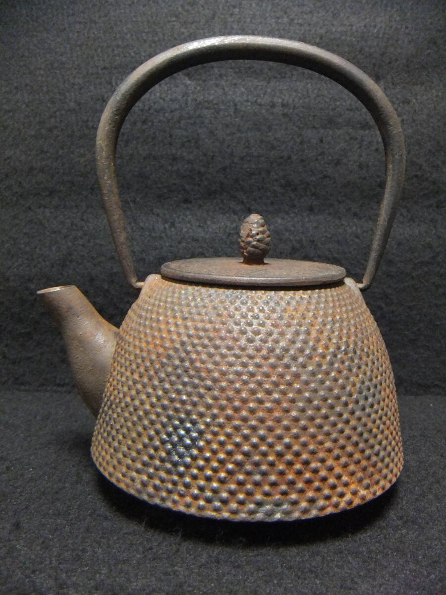 - 鉄瓶 小型 在銘 小さく規則正しく配列された あられ紋様 水漏れ無し