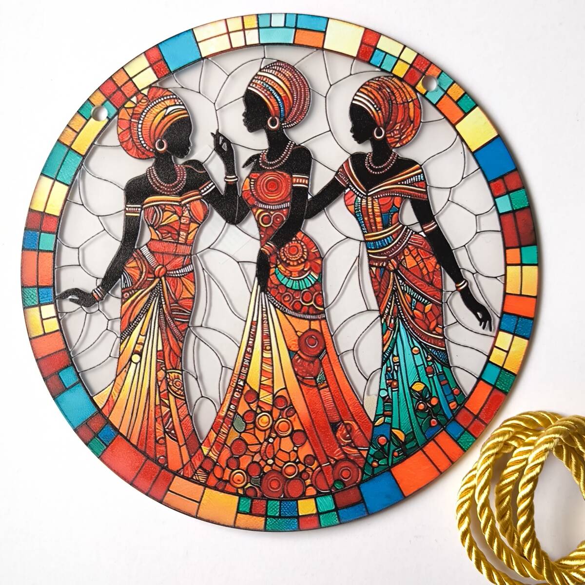 - 【3人の女性・アフリカ・民族衣装】アクリルプレート 飾り サンキャッチャー 紐付き オブジェ お洒落 壁や窓辺の飾りに◎