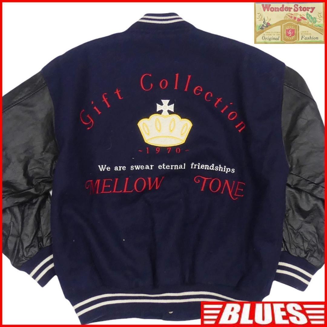 > 即決★Wonder Story★メンズM レザーアームスタジャン ワンダーストーリー 黒 ネイビー 紺 本革 ブルゾン 本皮 ジャンパー 革ジャン