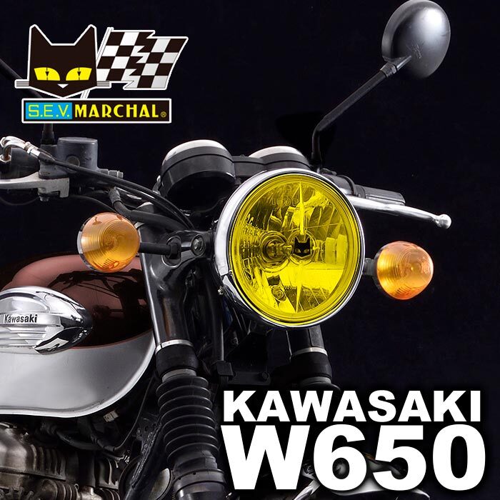 - W650 マーシャルヘッドライト722・702スタールクス イエローレンズ ユニット 純正ライトケース・外リムで装着!8401