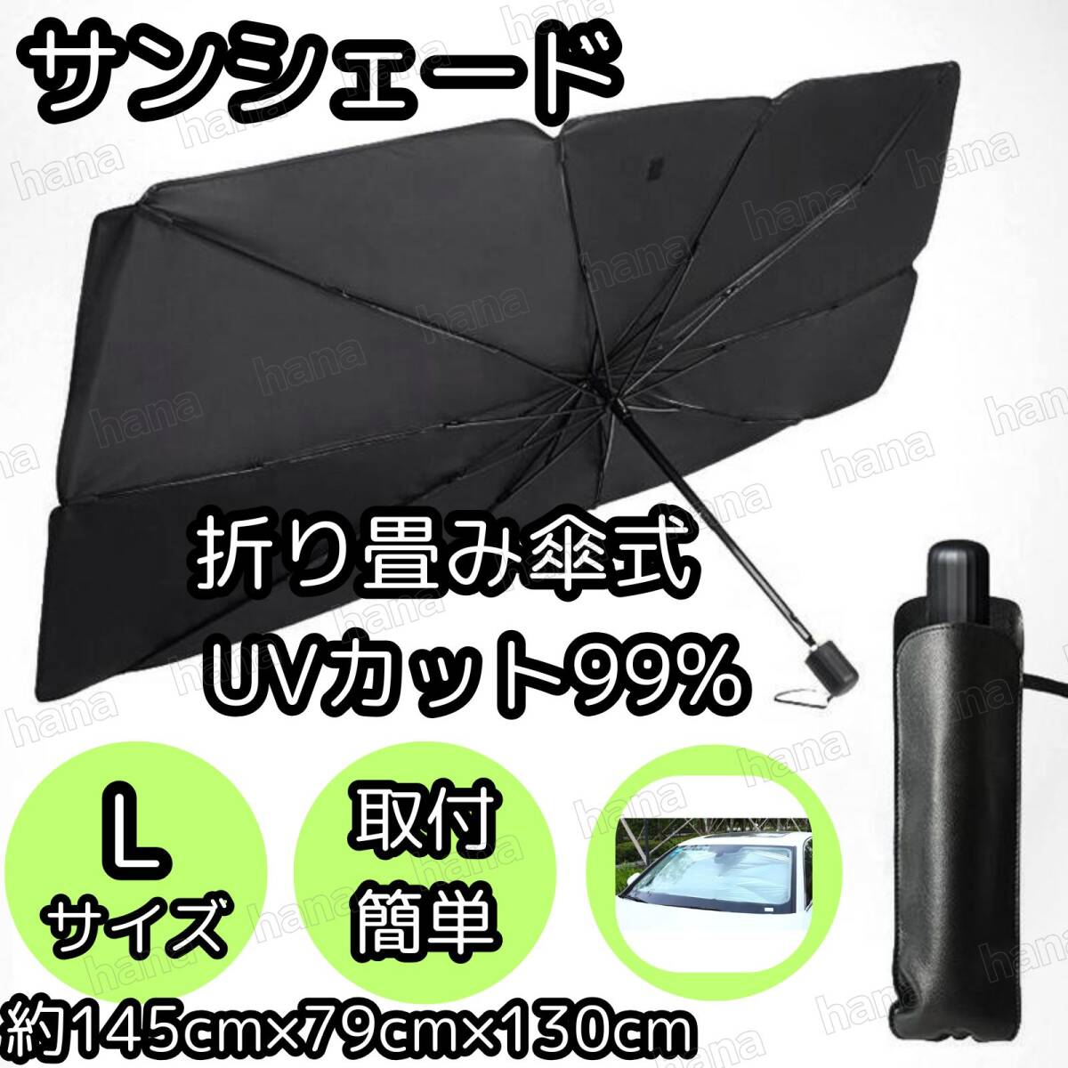 - サンシェード Lサイズ 傘型 折りたたみ式 フロントガラス用 UVカット 車用サンシェード 折り畳み式 日除け 車用 折り畳み