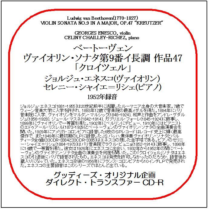 - ベートーヴェン:ヴァイオリン・ソナタ第9番/ジョルジュ・エネスコ/送料無料/ダイレクト・トランスファー CD