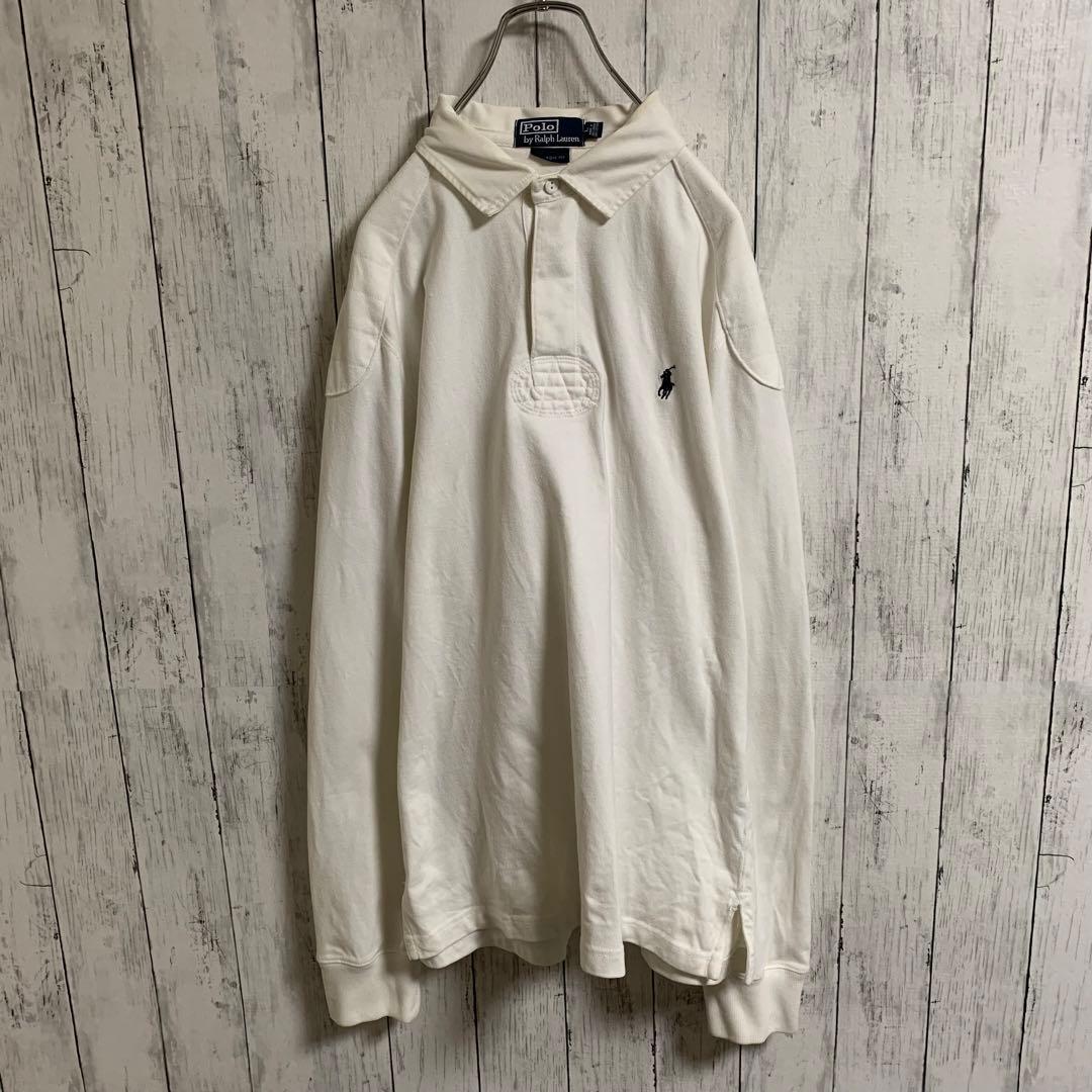 > RALPH LAUREN ラルフローレン ラガーシャツ ラグビーシャツ ポロシャツ 長袖 刺繍 白 ホワイト