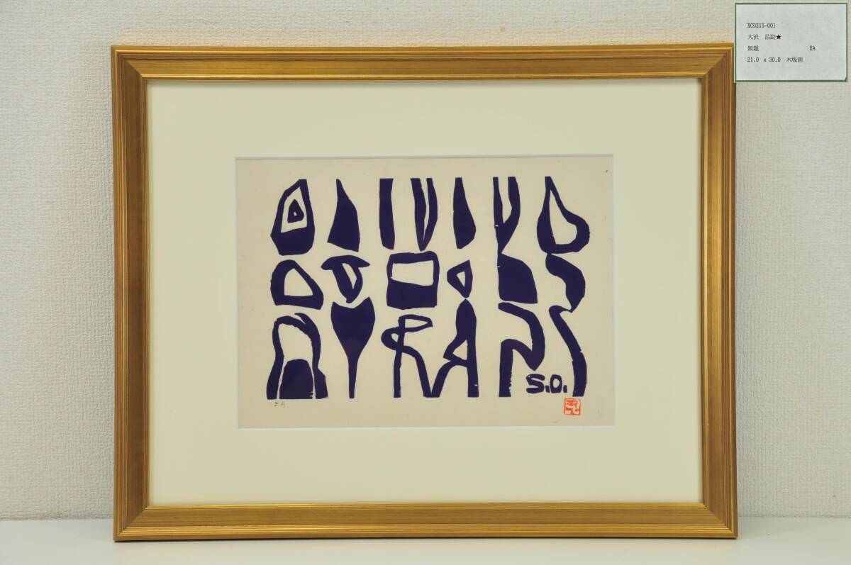 - 【真作】 大沢昌助 木版画 『コンポジション(紫)』 額装:約44×56cm 黄袋 差し箱 03408035-2