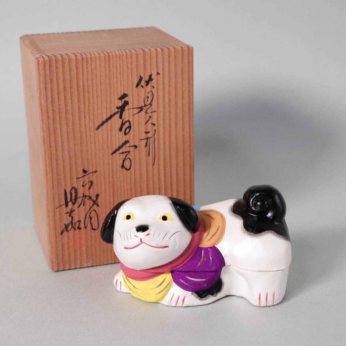- 伏見人形 六代目 丹嘉窯元 犬 香合 共箱 茶道具 F0917C10