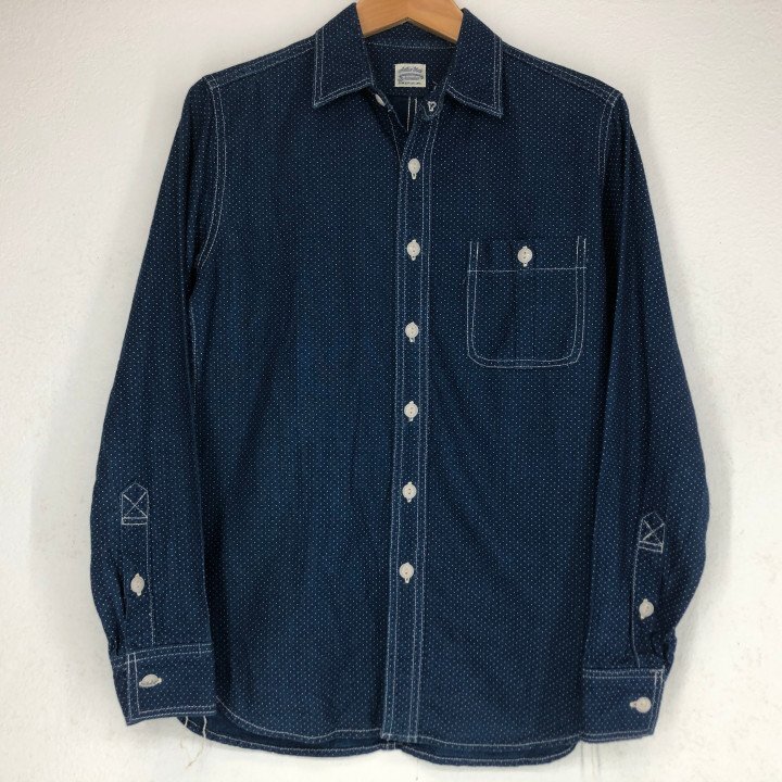 > Arthur Gluck Shirtmaker チンストラップ付 ポルカドットウォバッシュ 長袖シャツ SIZE: S ネイビー MH632025093011