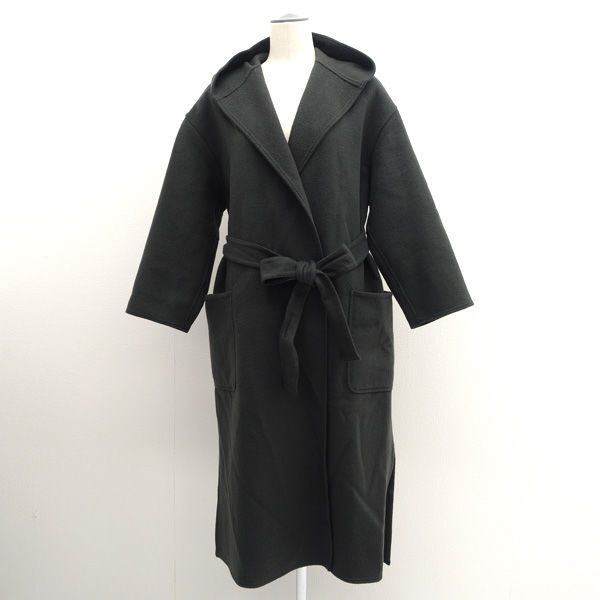 > ★ ミラオーウェン ベルト付フードガウンCT ロングコート ダークグリーン サイズ0 09WFC174077 (0220534532)