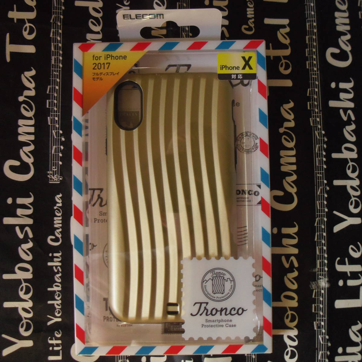 - iPhone X iPhone XS ハイブリッドケース 金 ゴールド キャリーバッグ調 四隅エアクッション 画面縁迄回込む設計 ストラップホール付 ELECOM