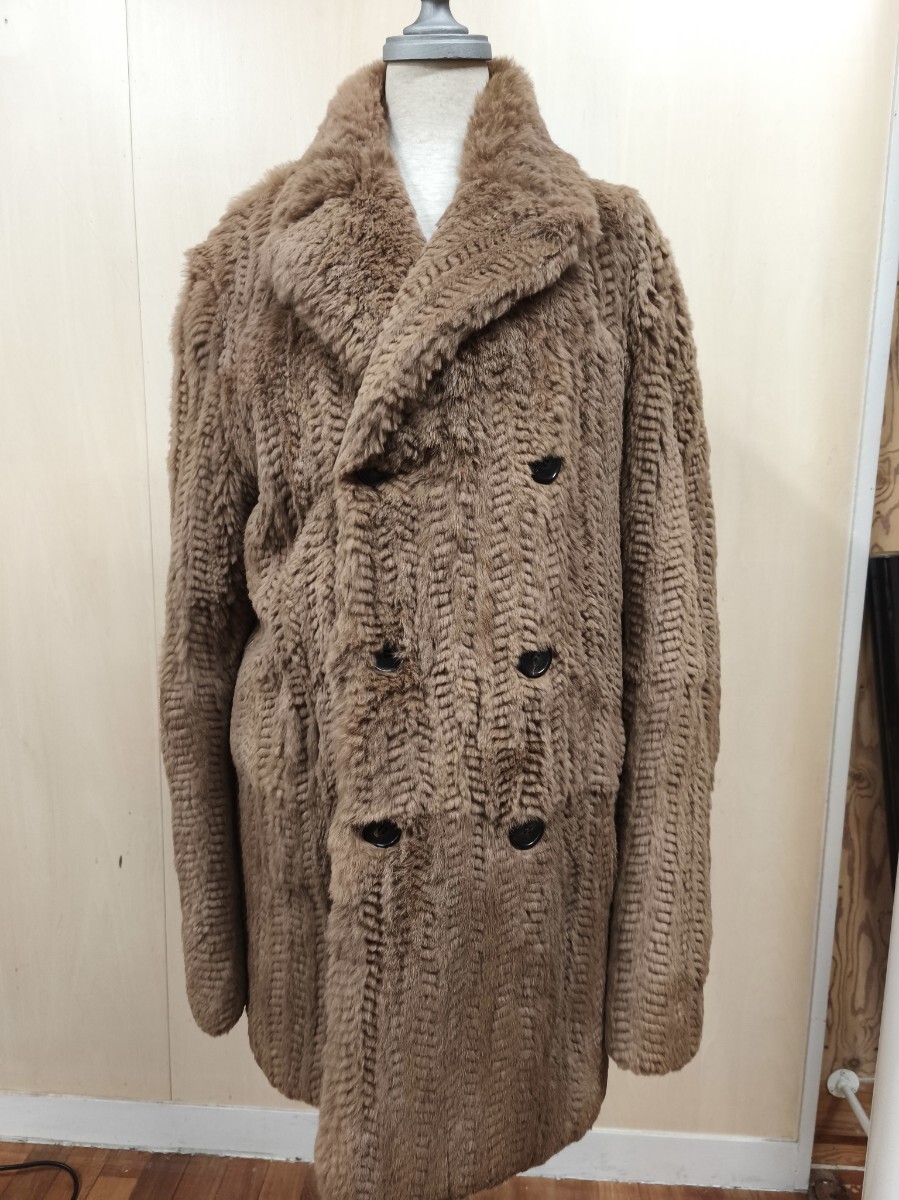 > DROMe /ドローム 正規品ラビットファー Pコート S毛皮 ヘリンボーン柄 伊製 イタリア製 定価/約30万円 高級 メンズ サイズS アウター