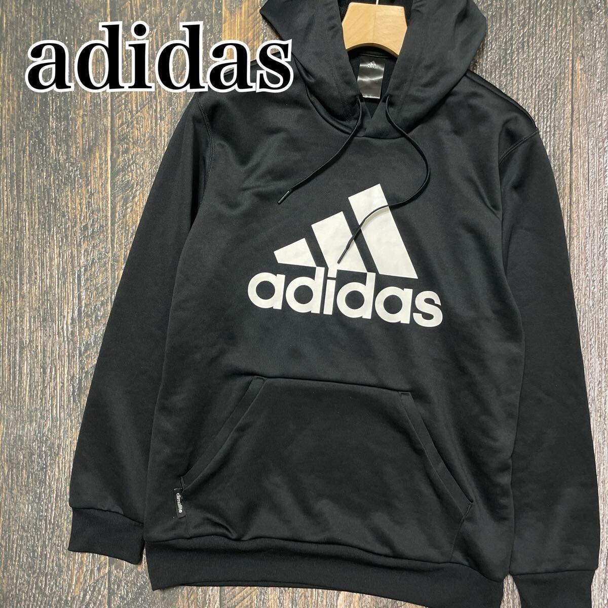 > アディダス adidas パーカー メンズ Lサイズ 相当 L ブラック 黒 スウェット ロゴ入り プルオーバー フーディー