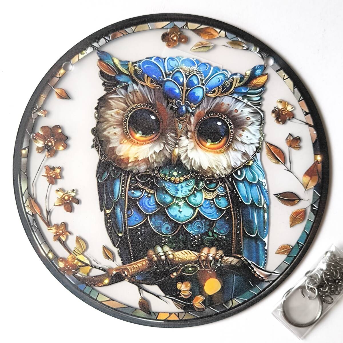 - 【可愛らしいフクロウ】アクリルプレート 飾り サンキャッチャー チェーン付き オブジェ お洒落 壁や窓辺の飾りに◎◎