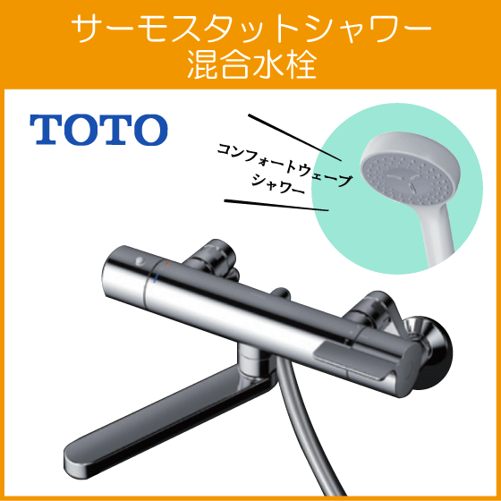 - 壁付サーモスタット混合栓 サーモシャワー コンフォートウェーブ 吐水パイプ 300mm TBV03408J1 TOTO GGシリーズ