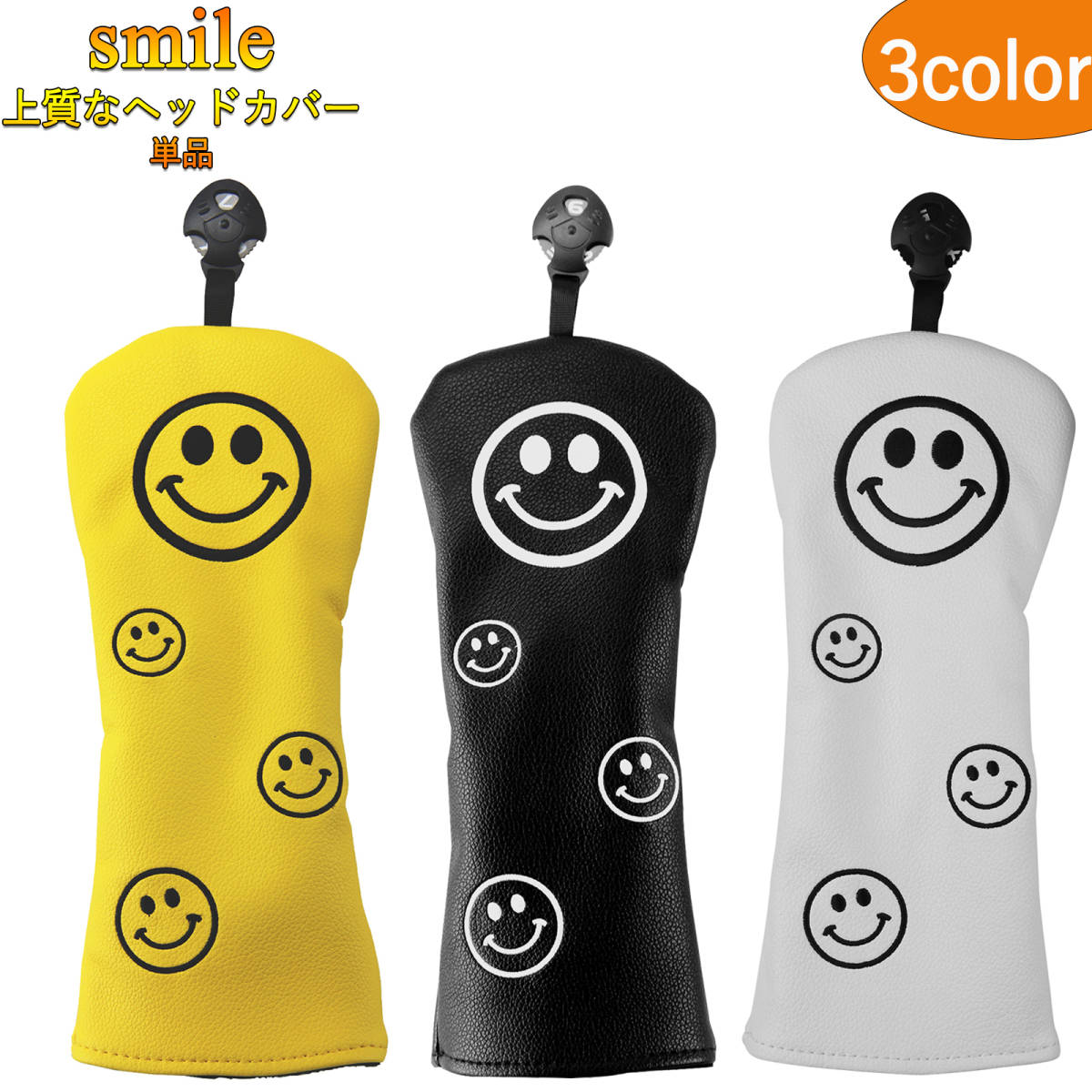 > ゴルフ ヘッドカバー ドライバー 440cc 460cc 用 カバー ウッド カバー ユーティリティ UT カバー 単品 防水仕様 スマイル