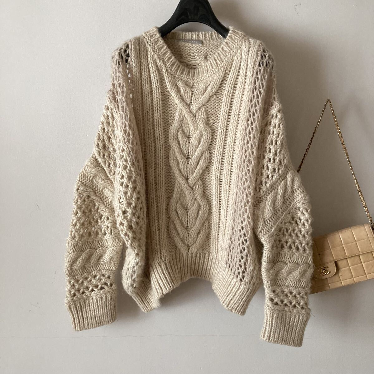 - ステファネル*アルパカウール ざっくりローゲージプルオーバーニット*生成りベージュ