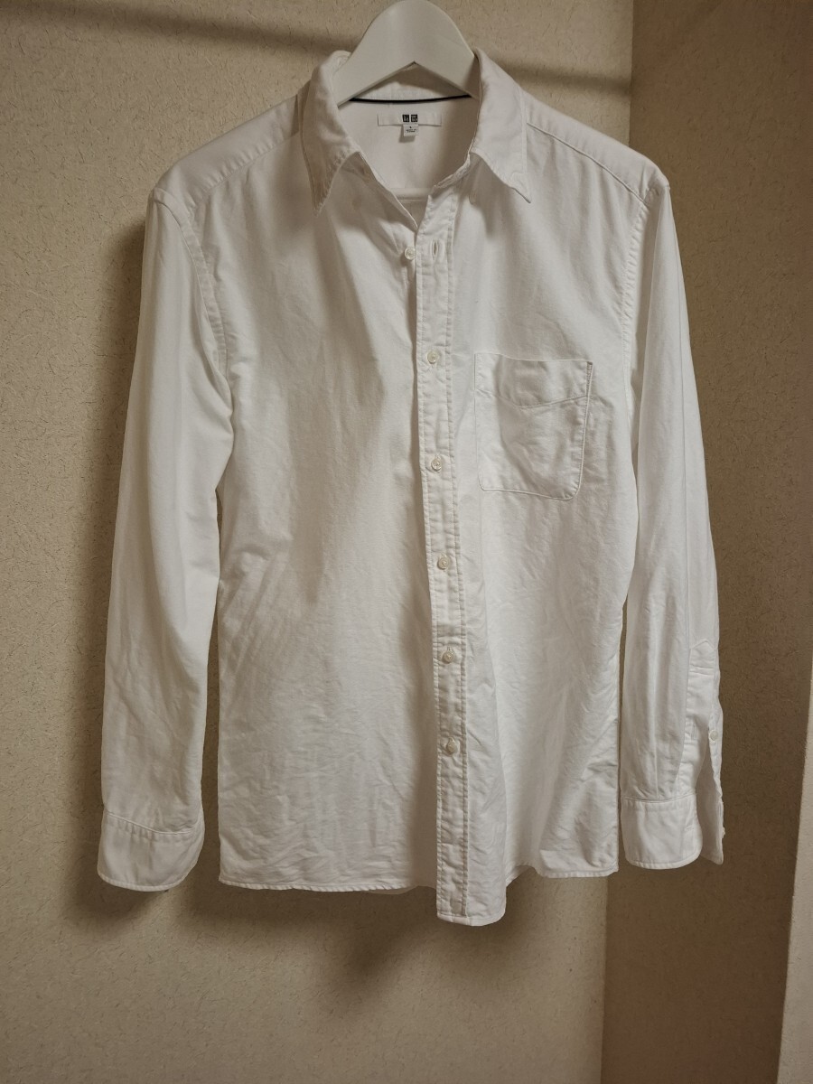> UNIQLO ホワイト ボタンダウンシャツ 長袖シャツ 白sizeLほぼ新品!格安!お役立てくださいませ。